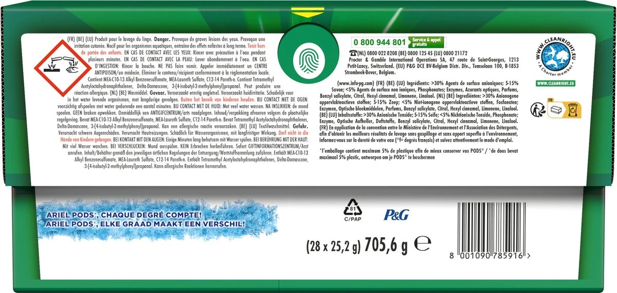 - Ariel All in 1 Pods altijd buiten het bereik van kinderen houden.