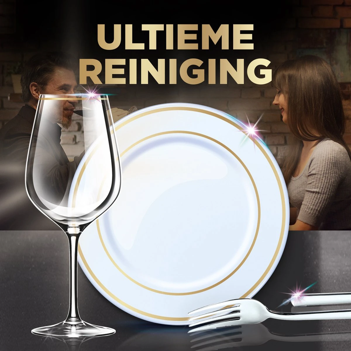 - Meest aanbevolen reinigingsmiddel, op basis van gerenommeerde vaatwasmachine- en glasfabrikanten die Finish aanbevelen.